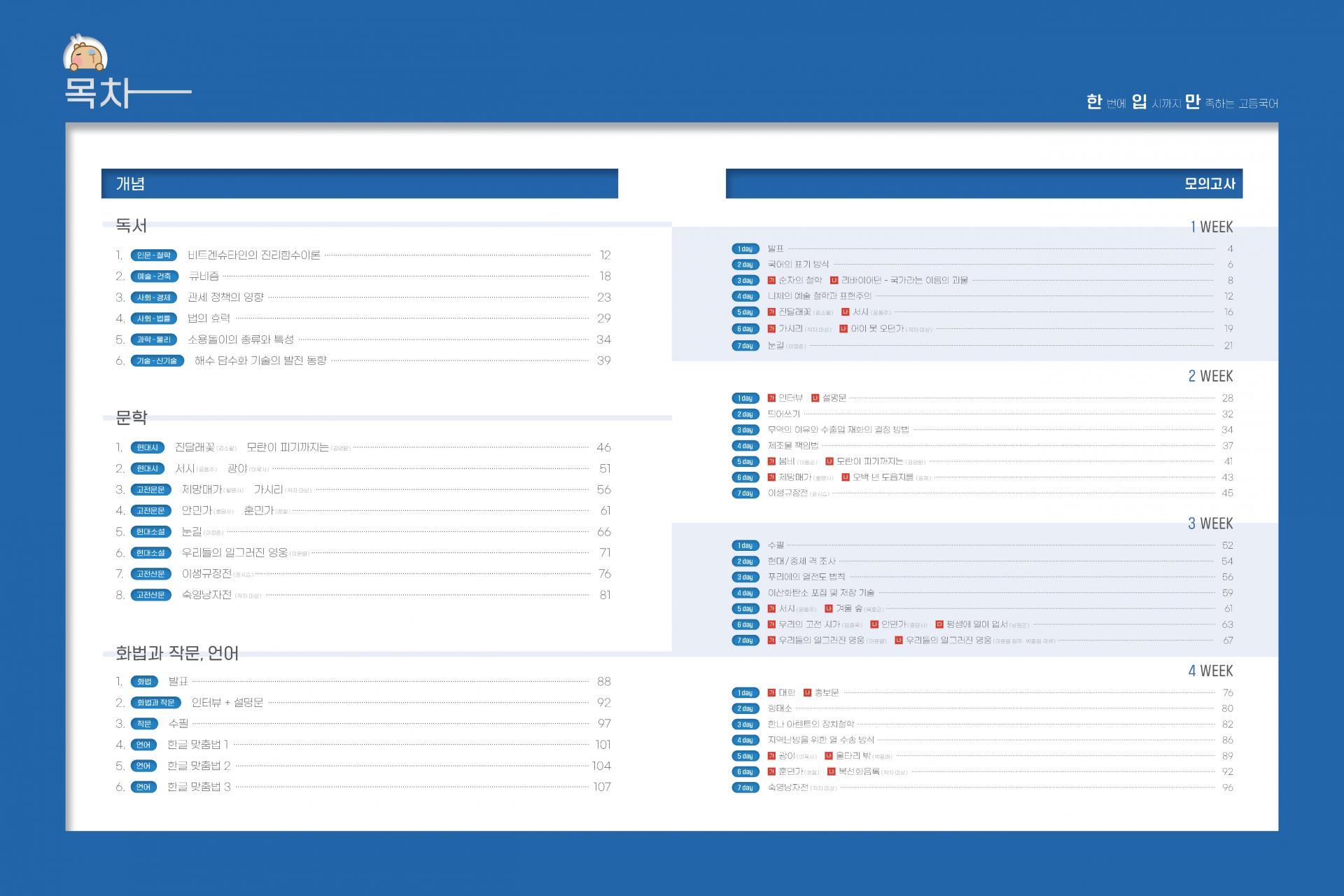 국어로에서 제작한 한번에 입시까지 만족하는 고등국어  한입만 교재